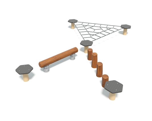 Array presents a compact yet intricate play solution within the Networx Designs collection. This configuration combines various balance and coordination challenges, promoting physical development and problem-solving skills. Array is perfect for smaller spaces looking to maximize play value with a variety of engaging activities in a cohesive, accessible layout.