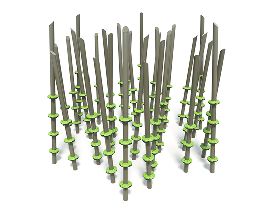 Bramble is the Climbing Forests range’s pinnacle of challenge and complexity, featuring an intricate network of steel beams designed to represent a tangled bamboo thicket. This piece offers the highest level of difficulty, with its dense configuration and climbing notches providing a vigorous physical and mental challenge. Bramble is designed to captivate and stimulate adventurous play, making it an excellent choice for playgrounds seeking to offer an intense climbing experience that can stand alone or integrate seamlessly with other play elements.