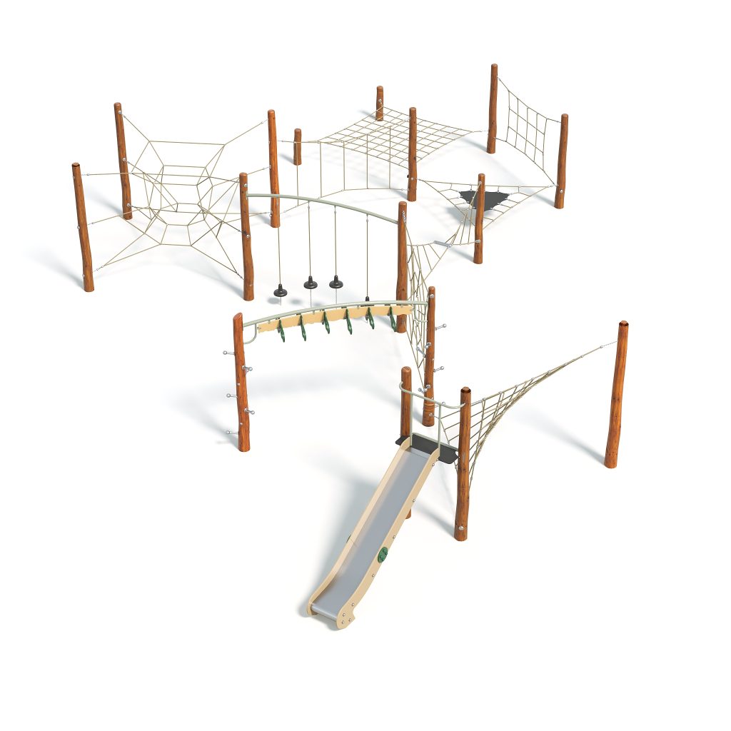 Congo is an adventurous playground set that transports children into the heart of an African jungle. Featuring a slide, climbing nets, and other interactive elements, it invites kids to swing through the trees, climb to new heights, and slide down riverbanks. This dynamic structure promotes physical activity, coordination, and imaginative play, making it a perfect addition to any playground that aims to inspire exploration and excitement.
