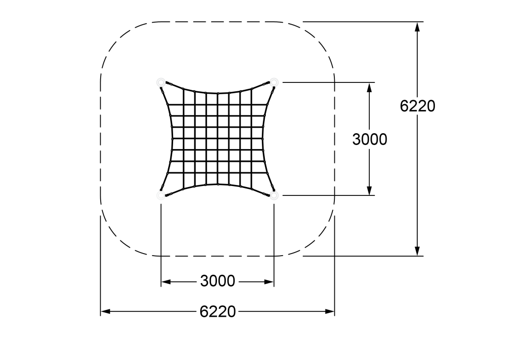 Inclined Square Net encourages users to climb, crawl, and strategize their way across. It promotes teamwork and individual achievement in a fun, physically demanding setup.