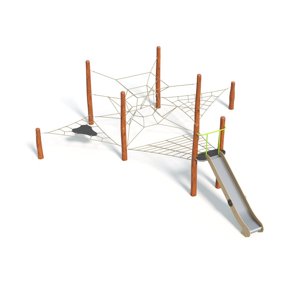 Java is an adventurous climbing structure that transforms any playground into a thrilling expedition. With its vertical wooden posts and intricate web of ropes, it invites children to navigate through a maze of pathways and challenges. The inclined rope net ramp adds an extra layer of excitement, making it feel like a journey up a mountain trail. Java encourages kids to climb, explore, and imagine endless adventures, promoting physical activity and motor skill development in a fun and engaging way.