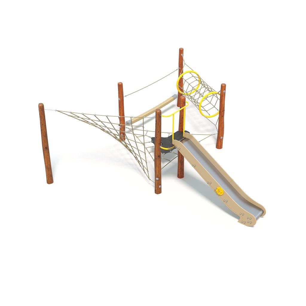 Kinabalu is an exciting playground structure that transforms any play area into a mountain adventure. Featuring a gentle slide and a climbing net that reaches the summit, it invites children to embark on thrilling journeys. Kinabalu encourages kids to explore, climb, and imagine scaling great heights, promoting physical activity and imaginative play in a captivating and engaging way.
