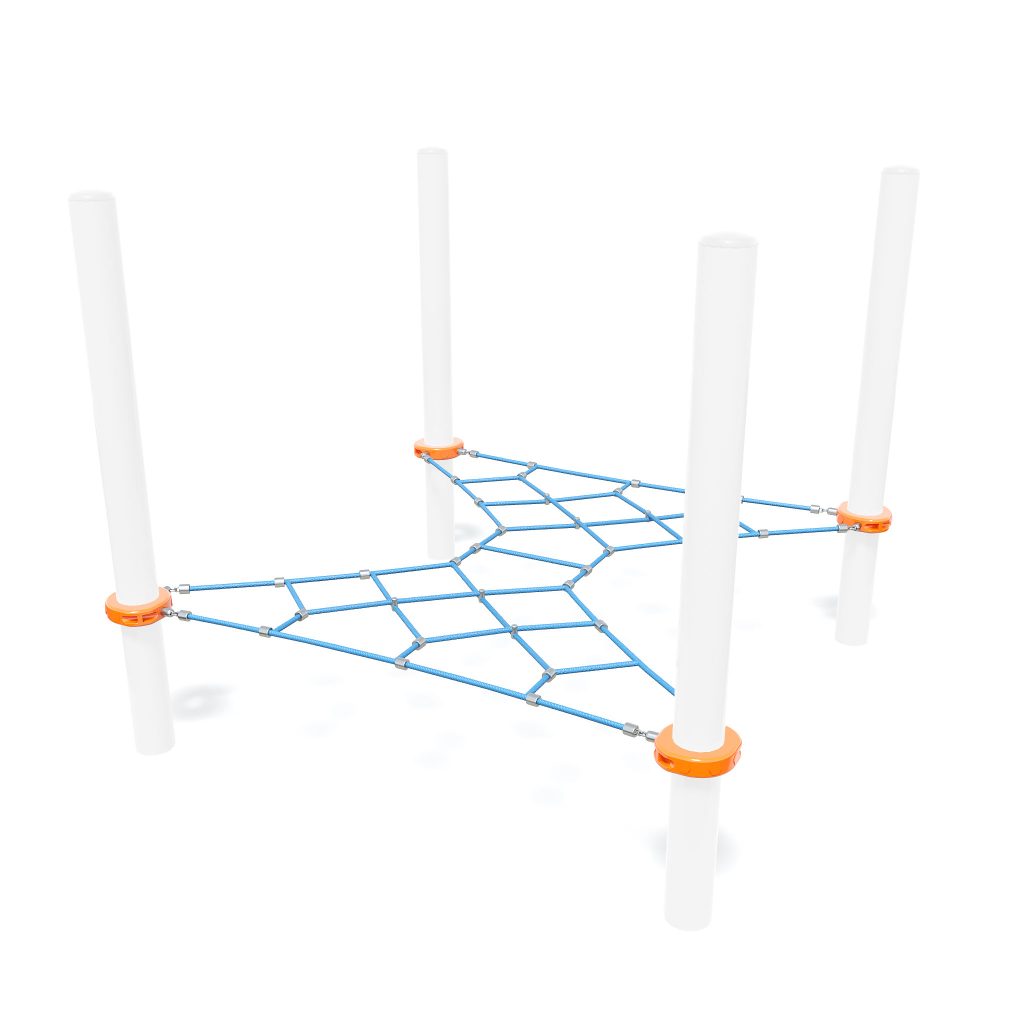 The Mini Cross Net elevates the traditional play experience with its intricate web of challenges. This structure invites children to climb, balance, and explore, promoting gross motor skill development and imaginative play.