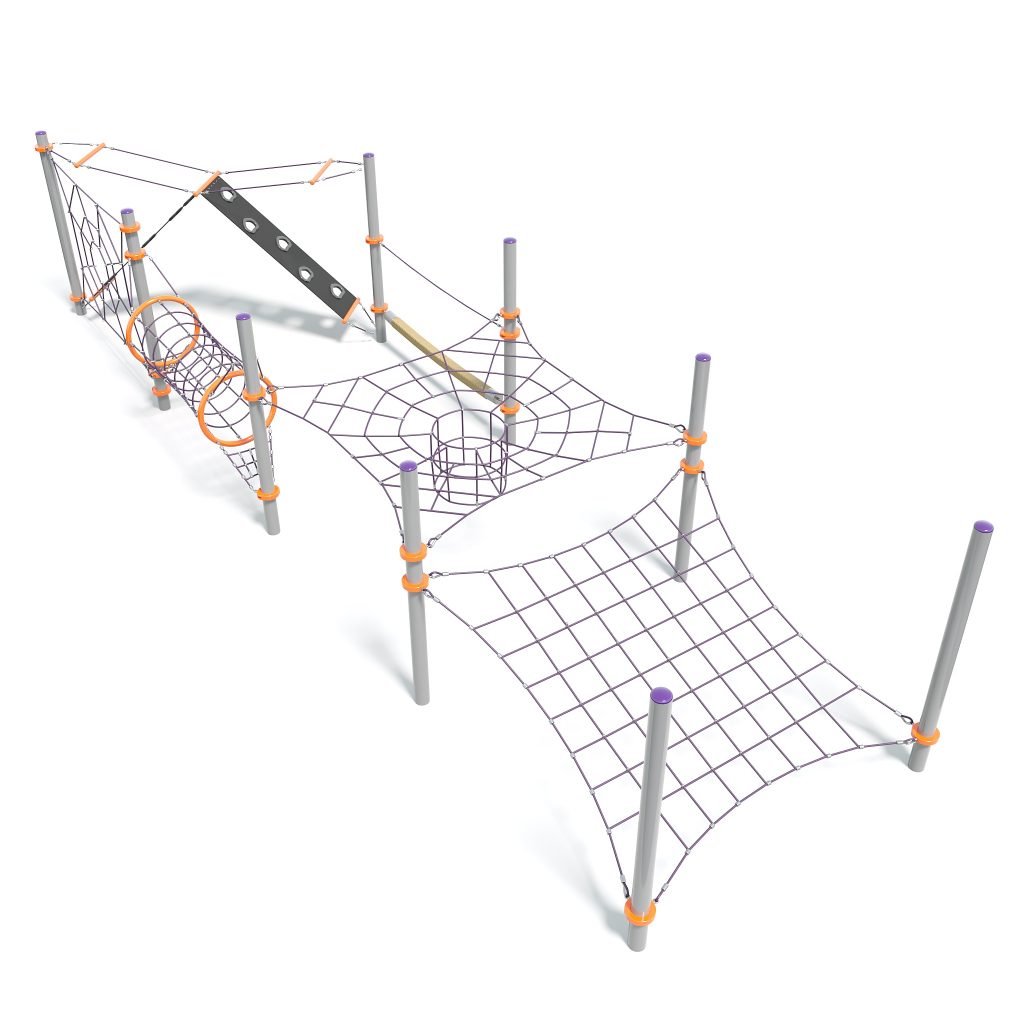 Rope Vortex is an exhilarating playground structure that transforms any play area into a swirling adventure. Featuring a series of interconnected ropes creating a complex web-like climbing area, it invites children to climb, swing, and navigate through its intricate design. This dynamic equipment promotes physical strength, coordination, and imaginative play, encouraging kids to dive into the vortex and explore endless routes and challenges.