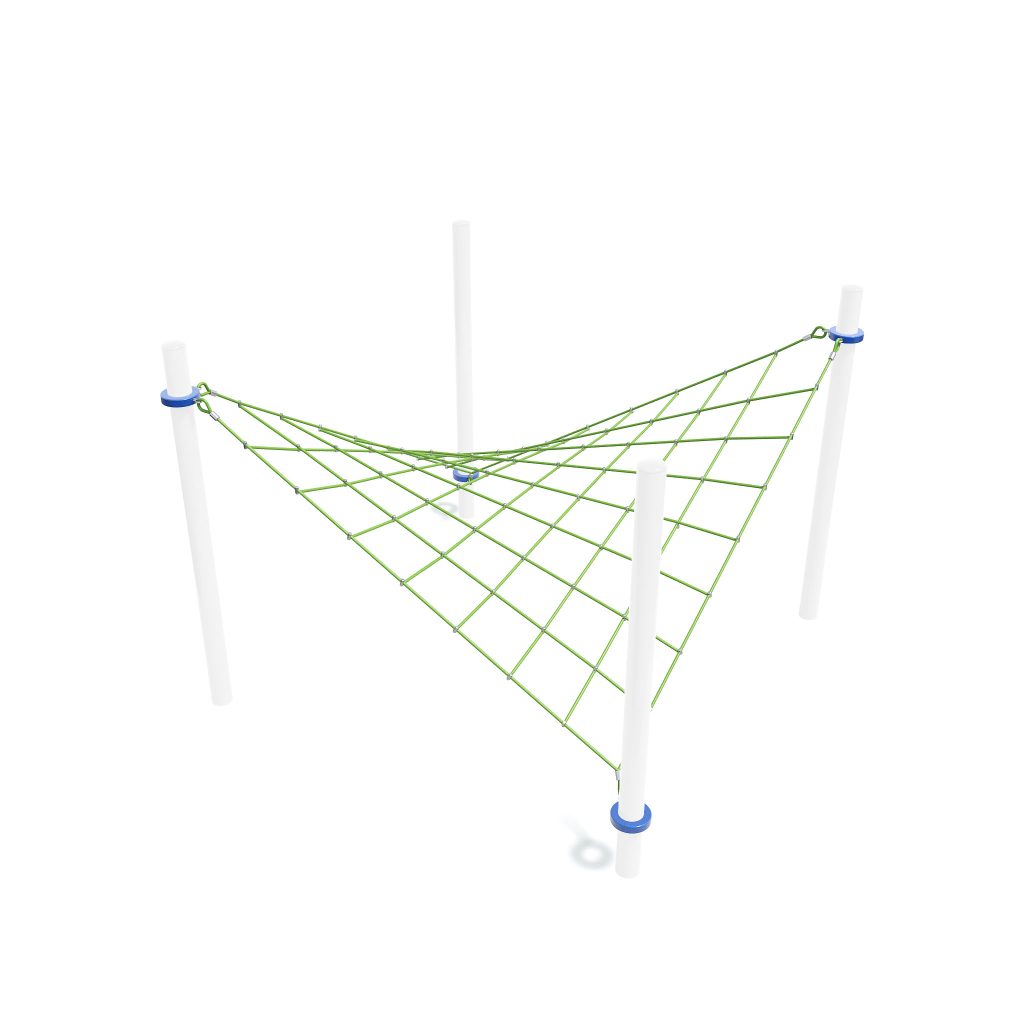 Saddle Net invites adventurers to climb, sit, and explore its vast netting. It promotes social interactions and physical activity, offering a unique playground experience that enhances balance, coordination, and imaginative play.