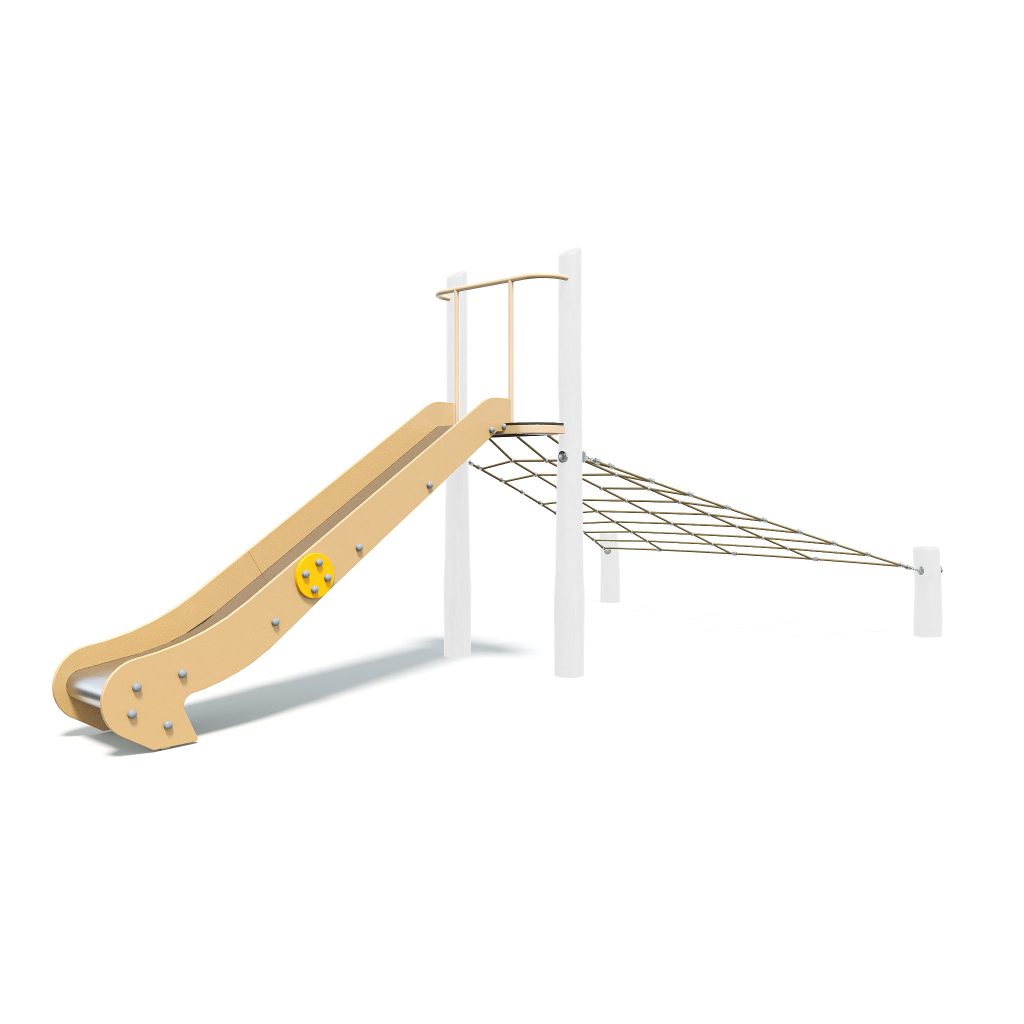 Natural Slide with Inclined Trapezoid offers a dynamic play experience, combining the excitement of sliding with the challenge of an inclined trapezoid structure. This timber slide fosters social interaction and physical activity.