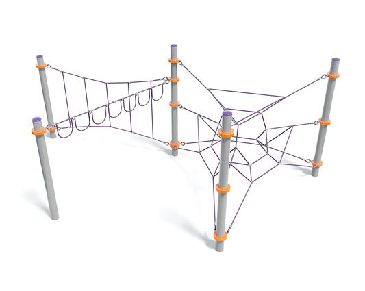 Tree Vine Challenge is an adventurous playground structure that mimics the natural growth of vines around trees. Featuring vertical poles and a horizontal web and diagonal ropes, it invites children to climb, swing, and navigate through its intricate design. This engaging equipment promotes physical strength, coordination, and imaginative play, transforming any playground into a jungle of fun and exploration.
