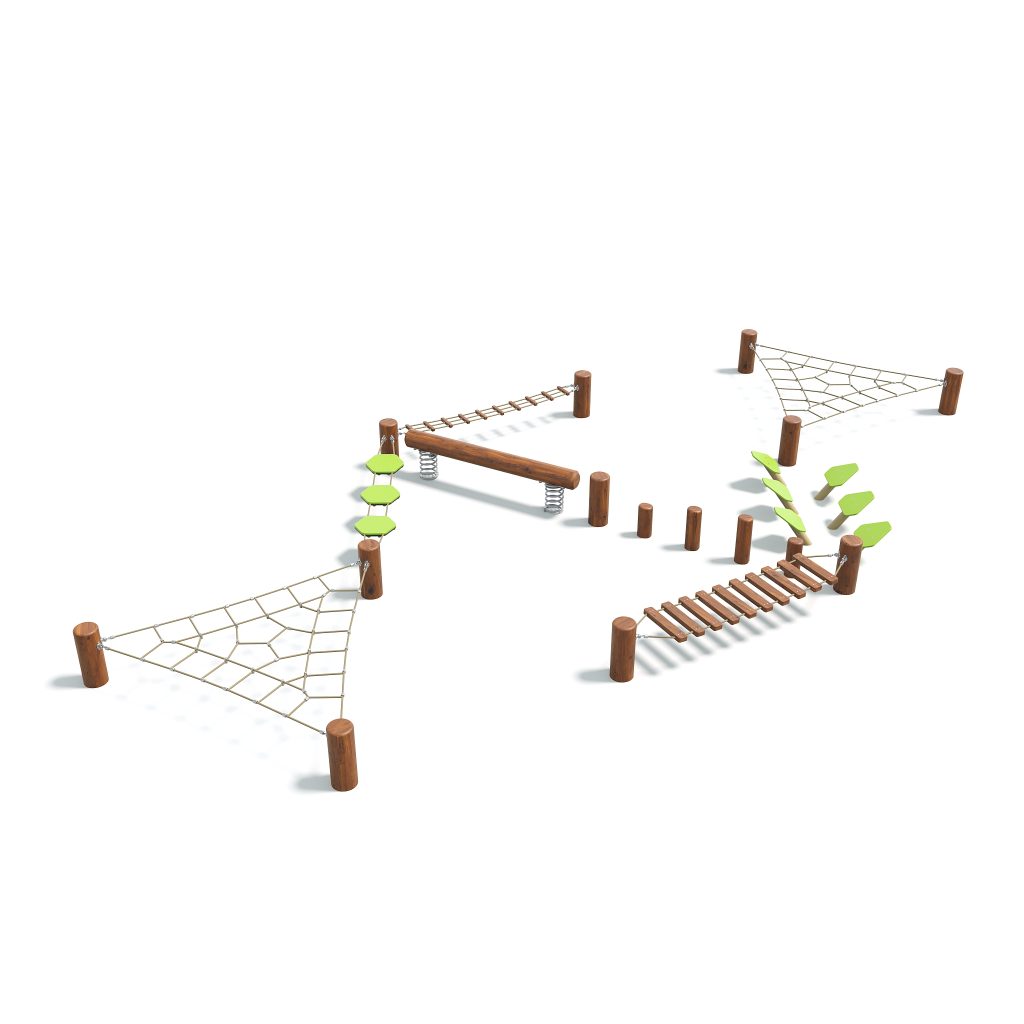 This dynamic piece features two challenging tri-nets and a sturdy timber bridge, offering a variety of stepping surfaces and promoting the perfect agility course.